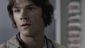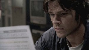 Me: When did you see that twice, without Dean?? Weren’t they pretty much hunting together before Sam went to Stanford and then he’s been not hunting? Hmm.