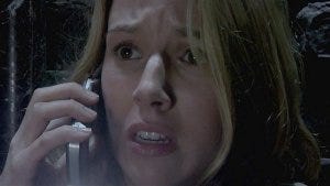 As this episode opens (in Philly), a young woman comes home to her apartment, annoyed by the lights flickering. She doesn’t realize she’s on a horror show, so instead of immediately getting the hell out of there, she calls her landlord to complain. Even when black goo starts to drip onto her and pour out of the light sockets, she does not leave, as all of us doing the rewatch start yelling “Time to go, lady!”
