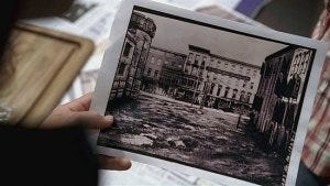 Jo runs through the facts of the case as they try to figure out what was there before the apartment building, and she keeps flipping a small knife and pacing, while Dean keeps asking her to cut it out.