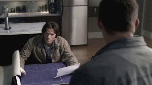 Dean is truly having a no good very bad day. Luckily Dean’s little brother is smart. He figures out that while the building doesn’t have a basement, there’s an old sewer system under it that hasn’t been used in a long time. Aha.
