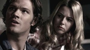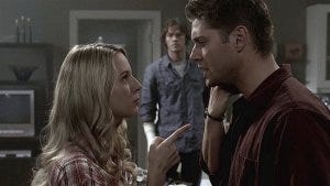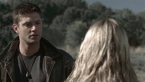He smacks her ass in some kind of retaliation slash flirting, and from this post-finale perspective, that actually struck me as not very Dean Winchester. He’s not always completely respectful of women in the early seasons, but he’s more respectful than that.