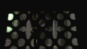 Again Manners uses the restricted frame of the slats in the wall to evoke that claustrophobic sense of being unable to move or get free or even see fully what is happening to make everything even scarier.