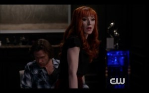 Dean is still not quite over the fact that Sam gave her that page of magic that’s allowed her to become so powerful, and he makes no secret of it. Poor Sam, he looks like he feels guilty enough already, Dean.