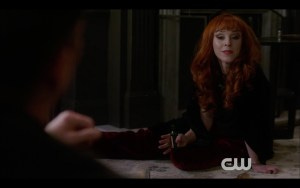 Meanwhile, Rowena has a picture of a little boy and is talking about making things right and I realize with an audible gasp that she’s going to try to get Fergus back. If I didn’t know that Mark Sheppard wasn’t returning, I would have gotten so damn excited by that – because I want it almost as much as Rowena does! It’s not going to happen, though, so instead I just ended up clutching my heart and knowing it was going to get broken.