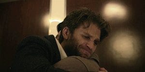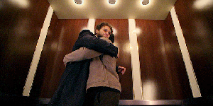 In the stuck elevator, Bret tries to comfort Liam, reassuring.