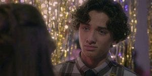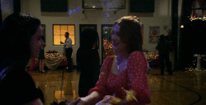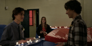 She tries to get Trevor to talk about his own childhood and his parents, but he deflects, saying his mom is dead and his dad is in prison. They share an almost kiss, then get interrupted to go dance. There’s a little interlude when the kids are actually having fun, girls and boys and girls and girls and boys and boys dancing together – a subtle thing, but important to see and to normalize. The kids are not hung up about any of it, Stella dancing with Bel, Trevor dancing with August, Stella with Trevor, all of them just having a good time and being kids.
