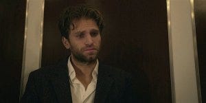 Bret and Liam get on the elevator to head out, and the tension between them is thick. Bret tries to grab Liam’s hand and he pulls away, refusing to talk about his work trip and so distracted that he’s not even listening to what Bret is saying. Bret finally gets exasperated.