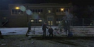 Their phone alerts announce a tornado watch, which saves Walker from having to play Yu-Gi-Oh, which amused me. (All the kudos to writer Alyse who I’m guessing is pop culture and fandom savvy). The trio head to the school where the kids are for the dance – because they need supplies, I think? So I’m guessing the school is a storm shelter?