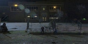 Meanwhile, the news in the background continues to warn about the storm, and something about Bordertown residents and temporary shelters never being installed…
