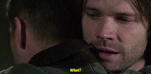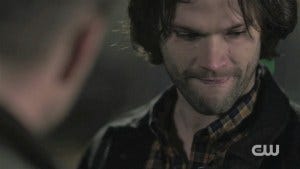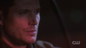 My guess is that was an ad lib on the part of Ackles, but either way, it’s so Dean – he needs to defuse all that emotion that’s gotten way out of control. And that gentle pat seemed so much like a parent and child, like something that Dean does instinctively for Sam because he has been so much a parent to him, so much more than a big brother.