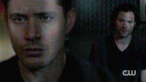 You can see by the look on Dean’s face that he’s thinking of his own little brother who will soon lose his big brother, and that the intensity of that pain isn’t lost on Dean. Or Sam.