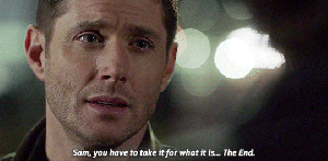 Dean: I’ll keep believing until I can’t, but when – IF – that day comes, Sam you have to take it for what it is. The end, and you have to prom…
