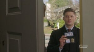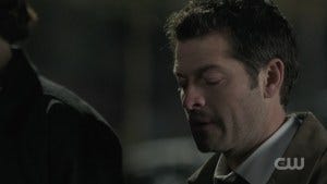 Dean quickly realizes that Sam has told Cas about his plan, and Cas does his best to talk Dean out of it. Dean refuses to listen, all the while casting glares at his brother for not keeping the secret. He does offer Cas an awkward goodbye though.