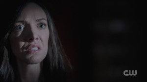 Cut to the other storyline (which dovetails in, so no complaints – or at least not the “two separate storylines argh” complaint yet). Other storyline opens on a bound and tortured woman and I’m immediately a bit sick to my stomach. The realism that makes the Show work so well in a scene like the one of Dean trapped in the box is too much for me sometimes in the ‘horror movie’ type scenes that the current showrunners seem to love. We see too much, and hear too much as she gasps in pain and terror, and it goes on way too long and we have to actually watch her be cut and then drown and honestly, Show, I don’t watch for that. I know you think I do, but I don’t. I don’t need so much graphic violence to know what’s going on or to empathize with a woman who’s being tortured and killed, thanks. I’m sure there are some fans who do watch for that, and that’s fine and dandy, but I’m not one of them. I expect some horror but I don’t expect it to be so graphic that it makes me queasy.