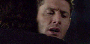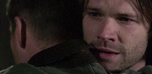 Dean holds his brother, and Sam abruptly stops hitting him and folds his arms around Dean desperately, almost burying his face in his brother’s shoulder.