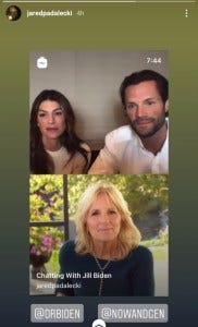 The Padaleckis also did an IG live with Dr. Jill Biden, touching on the importance of this US election and also the impact of loss and grief on mental health during this pandemic, and how to “glue our pieces back together”. They talked about how finding purpose in our lives can help, and about the power of a small act of kindness. Jared also connected with Dr. Biden around her being an English teacher.