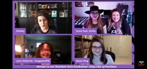 There was also ‘Festiboo’, a virtual convention put on by Nerds and Beyond to benefit Random Acts. I had great fun doing a panel with my friends Shelley, Alana, Scout and Zerbe – we are all vendors at Supernatural conventions and we just really miss seeing each other on a regular basis, so this was like a little reunion!