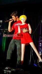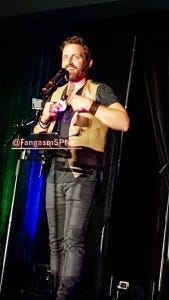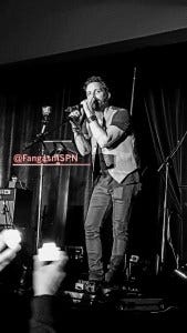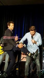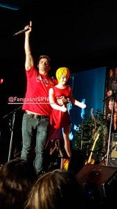 Jason Manns did a lovely “quoncert” including a beautiful duet on Hallelujah with Rob, a rousing version of Wagon Wheel with Richard, Rob and the band, and an old favorite, , that he sang with Jensen Ackles a decade ago at the very first Supernatural convention in the UK. Jason remembered how nervous Jensen was, hesitant to even step close to the mic and wearing a baseball cap and chewing lots of gum. Jason said he’s loved watching Jensen’s evolution into a rockstar.