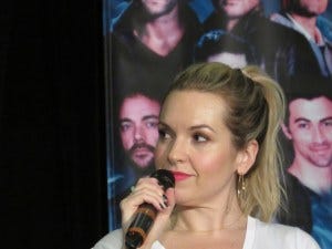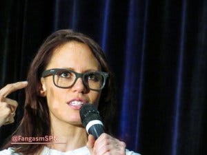 Then we had a Kim and Briana panel, which was irrepressible with all the energy that both they and we have around Wayward Sisters. They start filming next week, and they clearly cannot wait (though Kim did say the fight training had left her so sore that she was going to wear flats all weekend). Both are excited about the fact that it’s a show starring six women, who are real and complex and aren’t standing around talking about a man.