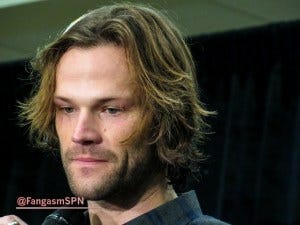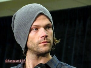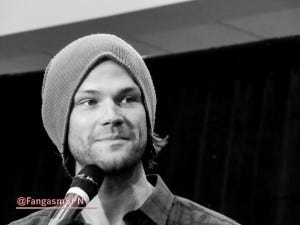 Maybe my favorite part of the panel was when they did impressions of Season 1 Sam and Dean. Jared whipped off his beanie and shook out his hair into bangs (which is still my favorite Sam look). I mean, look at him!!