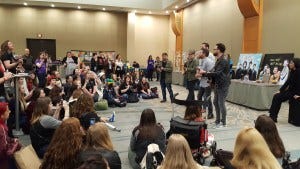 I tried to grab some lunch with friends, which meant gigantic lines at Subway and eating our subs in about 3 minutes flat, but it was worth it to catch the Louden Swain acoustic set (with Jason Manns) in the vendor room. Everyone joined in on Medicated, with makeshift kazoo sounds, and it was all kinds of awesome. I kept thinking, SPNFamily, this is what it means. And Rob’s smile pretty much said it all.