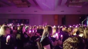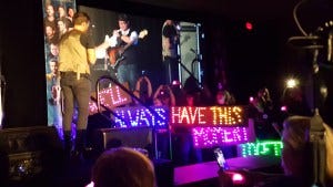 She Waits is always emotional, but Rob was particularly demonstrative last night. The room was lit with gorgeous purple candles that fans handed out, and the effect was so beautiful as Rob sang and the lights swayed to the music. There was also a message in lights on the side of the stage that Rob went over to read, exclaiming “I love you guys so much” again and again.