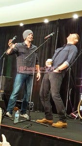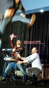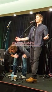 The last question was notable not so much for the question, which I’ve forgotten, but for the fact that Jensen played keyboards for the entire thing. It was over the top melodramatic and he nailed it and it was hysterical. Watching Jared try to keep a straight face and actually answer the question while Jensen just kept playing was priceless.