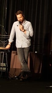 While Rich and Rob were still onstage, Misha cracked everyone up by telling a story of being at a serious business-y meeting and then a sock fell out of his pants. You can imagine where everyone’s minds immediately went. Then he told a hysterical story about his formerly straight laced mother in law getting divorced and discovering 70s porn, which was made a thousand times MORE hysterical because AWKWARD!