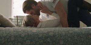 Despite his reminder, they are both apparently feeling nostalgic, and a frantic makeout session ensues. Nobody is complaining because she pulls his shirt off and he hikes her up and carries her to a bed with her legs wrapped around him and when his phone rings she tosses it right over her shoulder. So there’s that.