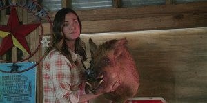 At the auction, we get to see Cordi as almost back to his Duke person, in a baseball cap and a flannel shirt, which was appreciated. He sees a man fall off a horse and has a flashback to the race when the saddle strap broke. It’s about time you started thinking about that, Cordell! Why has nobody gone over that saddle with a fine tooth comb??