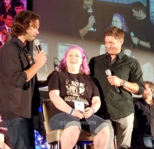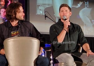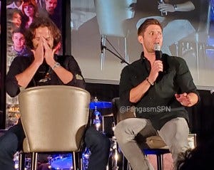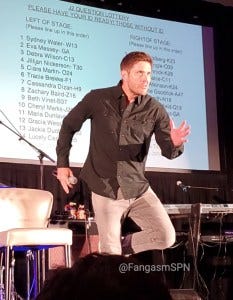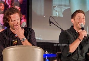 My favorite story, hands down, was Jared’s story of breaking up a fist fight when he and the family were in France. Jensen enjoyed it so much he couldn’t stay seated.