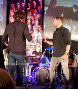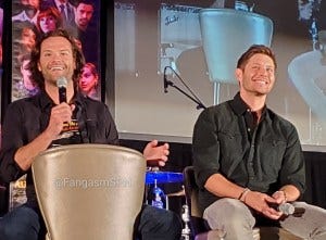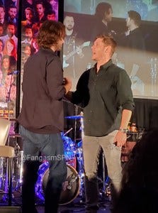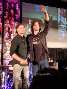 There’s always a moment at the end of their panel when Jared and Jensen acknowledge each other and that they’re in this together with a fist bump. This time they did that and then hugged each other, turning to stand together to thank the fans.