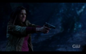 The cold open began and someone said, in a rather strangled voice, “Wait, is that…is that Eileen??” Someone else yelled NOOOOO as we all held our breath and just gaped. I think I had a hand over my mouth in shock. Onscreen, we get one glimpse of Eileen’s terrified face as she flees from something invisible, the sound muted as we watch in horror as she’s torn apart by hellhounds, her body tossed around like a rag doll. It was upsetting and disappointing that the first deaf character in Supernatural had been killed. But it was so much more than that. Eileen was killed by something she couldn’t SEE, so she couldn’t compensate, in a sequence with no sound, as though taunting her for her deafness, which was hard to stomach. I suppose you could also look at it as Eileen was such a kickass hunter that the only thing that could possibly take her out was something she couldn’t see, precisely because she WAS so good at compensating. Most of us had the first knee jerk reaction though, hence the putting aside the nachos temporarily.