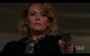 I loved Sam and Dean being smart, finding the bug in the bunker and then setting up Lady Toni and capturing her. How satisfying was it when Sam had his gun pointed at her? Very.