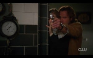 I also loved the fight scene, which was masterfully choreographed and executed. Dean sliding to his knees to take out Ketch’s gun? OMG someone give me a cold drink. Dean shooting one of the BMoL from behind his back??? Um, can I have another cold drink?