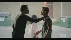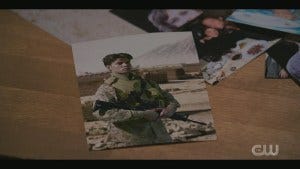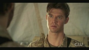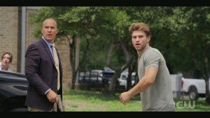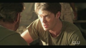 Cordell remembers his time serving in Afghanistan – we see a flashback of two men fighting, one coughing violently. It’s young Walker, losing the fight – and it’s Colin Ford, once again portraying a young Jared Padalecki!