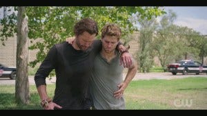 Liam asks Cordi to promise that he’s not gonna try some Lone Walker Ranger stuff and risk his life to save his little brother. Cordell promises, the brothers clasping hands, and then he holds his injured little brother and I am all filled up with Supernatural-ish brother feels.