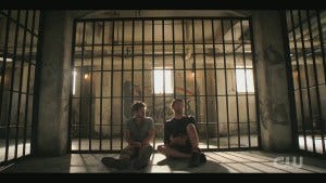 The scenes of the brothers locked up together are ominous and dark, but they’re also beautifully filmed, the light coming through the bars making the whole scene look surreal. A moment of applause for the director of photography and for director Austin Nichols! And for Padalecki and Keegan Allen, who make being roughed up and held in a cell look alarmingly attractive.