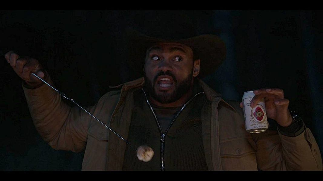 There’s a detour where a Copperhead snake ends up nearly under Trey’s boot and he freaks out (who can blame him?). Walker manages to trap it under a bucket, and then a Park Ranger shows up to check on how they’re doing and takes it away with her after informing them they’re camping in a No Burn Zone. She did not seem sus, but…