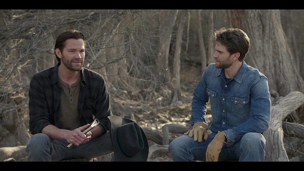Eventually, Cordell can’t ignore it any longer, and he meets his younger self skipping stones in the creek. What an absolute treat to have a scene with Jared and Colin interacting!!! Young Cordi tells Walker that he’s carrying an incredible weight and it’s crippling him.