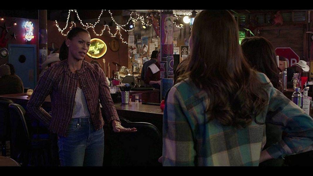 Meanwhile, Stella and Sadie head to a college party at Sadie’s suggestion. She introduces Stella to Witt, who apparently came to her rescue in Dallas when she tried to skip out on a restaurant bill. It’s always sus when someone runs into someone again randomly, isn’t it? Shades of Sam Winchester and Meg.