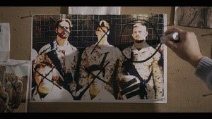 Cordell shows Julia a photo of The Green Raiders, Raider Team 3, and together they brainstorm who it might be. Julia crosses out possibilities, starting with “Coop” who died – I sort of cringed when she markered over the photo though!