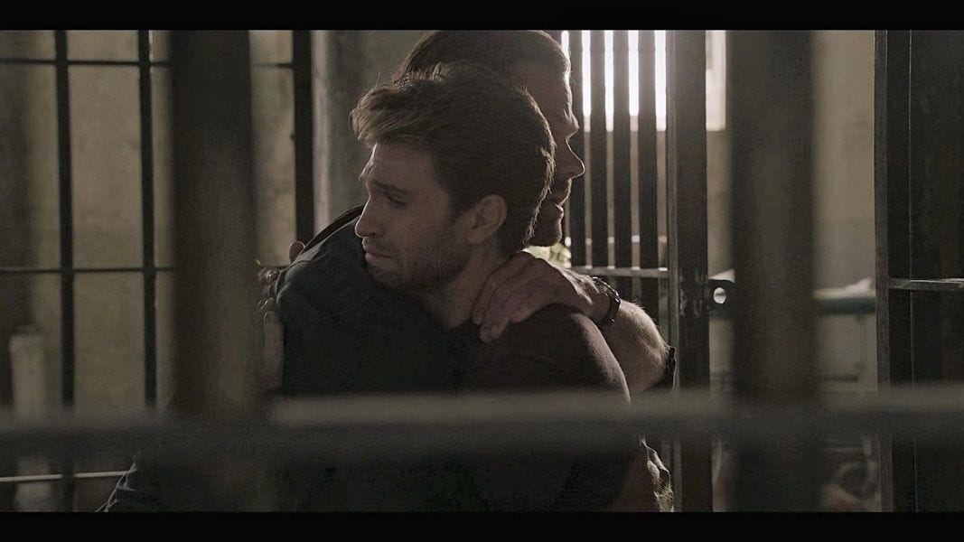 Meanwhile, Cordell really is trying to do the right thing with Liam, putting aside all the other (substantial) family drama to make time for them to do some healing. They go back to the scene of their captivity to confront their trauma. Liam immediately has flashbacks, and Cordell supports him, saying “you got this, why don’t we do it together?” In they go, Liam once again remembers, and Cordell too. Liam’s right, knowing he did a lot of work in therapy, but that doesn’t stop all the memories from flooding back.