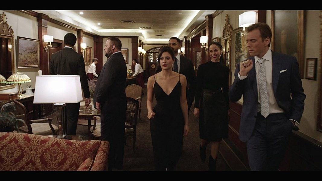 The Mayor’s fundraiser is a good excuse for a dressed up Cassie and Trey and Kevin. And puts Cassie on Kevin detail, so they can snipe and banter and obviously end up attracted to each other because this is TV.