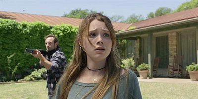 The end of the episode wraps back around to the beginning, and ‘Present Day.’ The Mustang pulls up to the ranch house and the truck pulls up behind them, Trevor getting out and Clint pointing a gun and Liam running out of the house and getting shot, collapsing to the ground.