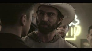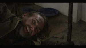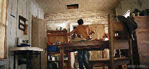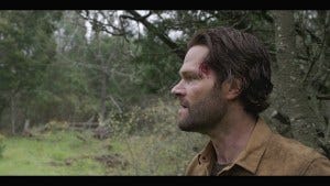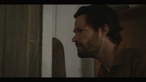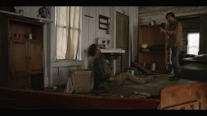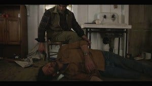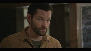 Cordell comes to in the woods, a bit the worse for wear, smart enough not to follow the easy trail. More great music, Padalecki’s hair freed from the dreaded gel and looking a lot like Sam Fucking Winchester as he avoids all the traps and makes his way (even without his boots that Coop confiscated) to the old house where Coop is holed up.