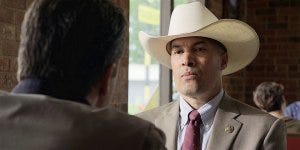 Stella and Augie give Cordell permission to go back to the Rangers, and he shows up just in time to go take down the bad guy, white hat and badge and everything. It was a meaningful moment when Walker was sworn back in, and coincidentally Jared Padalecki just looked damn good in that white hat and with an expression of determination on his handsome face.