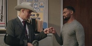 The episode picks up shortly after the last one ended, Captain James returning to HQ after recovering from his gunshot wounds. Liam is there because he gave him a ride, and Trey is too just because (because their bromance is in full swing, obviously, complete with welcome back fist bump).