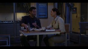 This episode also gave fans more “Tricki” content, the portmanteau for Micki and her boyfriend Trey. Their relationship is refreshingly healthy, both of them sometimes getting distracted or not communicating well but both also able to own that when it’s pointed out and, perhaps even more importantly, to apologize for it and make amends. Lindsey Morgan and Jeff Pierre have great chemistry together, but they also have some great writing and characterization to flesh out this relationship – and no, I’m not referring to Pierre’s shirtless scenes (I’m not complaining about that either!) Trey clearly has plenty of understanding of what Ramirez is facing right now as a Mexican woman in the Texas Rangers, since he recently left the armed forces himself. When she confides that she felt like the Mexican “good guy” there to justify taking down the Mexican “bad guy,” he sees it differently.