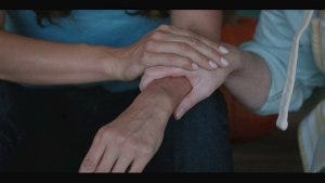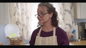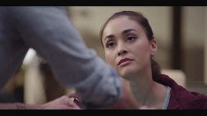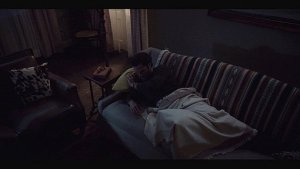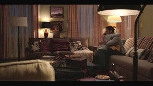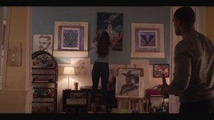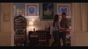 Micki comes back to the home she shares with Trey, taking down a painting from the wall and replacing it with the one of the church while Trey brings her a beer.